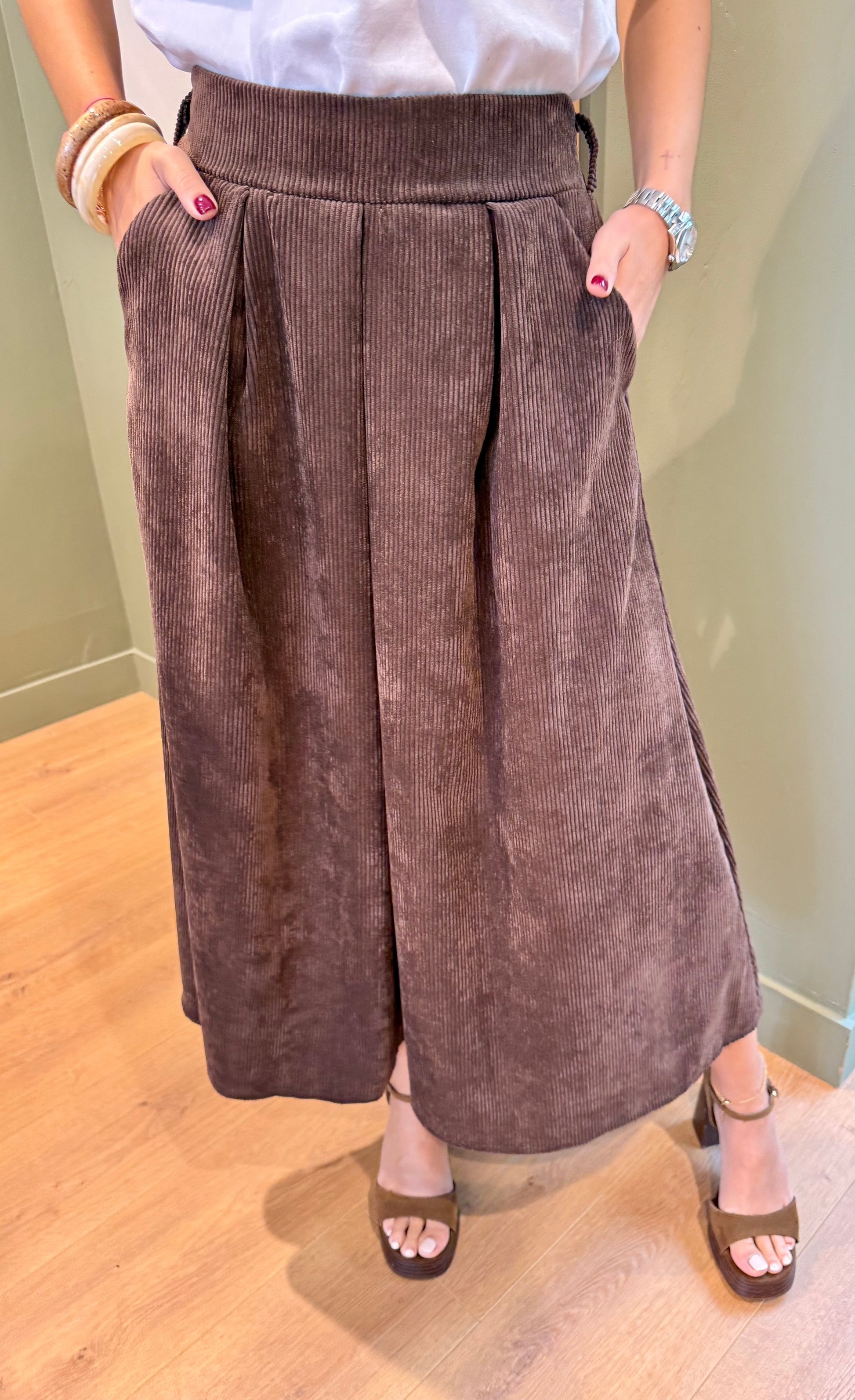 Découvrez notre Jupe Alice de Studio Parisien en velours chocolat ! Avec ses pinces, elle épouse parfaitement vos formes et ajoute une touche de sophistication à n'importe quel look.